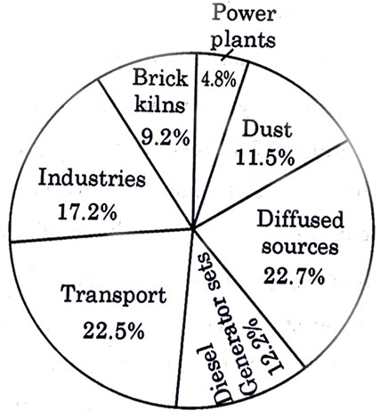 - Later, a health assessment was undertaken with a structured questionnaire at some nearby dispensaries which fall under areas with different ambient air pollution levels. Three dispensaries have been surveyed with 100 participants. It shows that respondents with respiratory diseases (85.1%) have outnumbered waterborne diseases (14.9%) and include acute respiratory infections (ARI) (60%), chronic obstructive pulmonary diseases (COPD) (7.8%), upper track respiratory infection (UTRI) (1.2%), Influenza (12.76), and acid-fast bacillus (AFB) (3.4%).