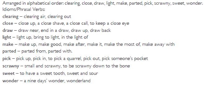 Here are some words from the lesson. Working in groups, arrange them in the order in which they would appear in the dictionary. Write down some idioms and phrasal verbs connected to these verbs. Use the dictionary for more idioms and phrasal verbs.