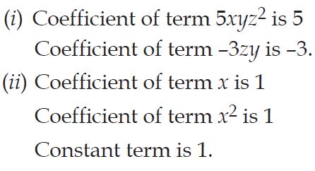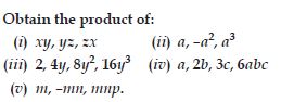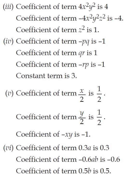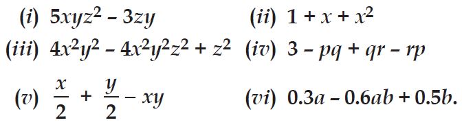 (i) 7xy (ii) 4 mn2 (iii) 2l.