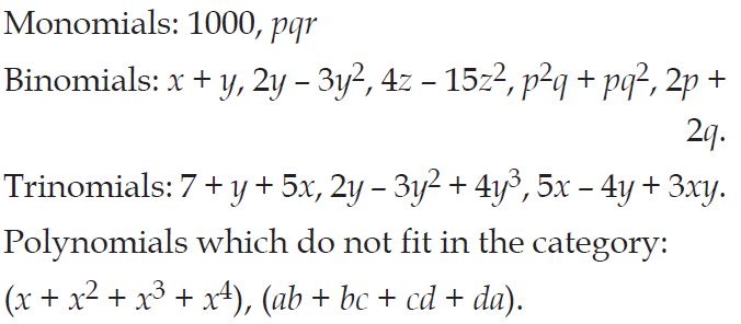 Classify the following polynomials as monomials, binomials, trinomials. Which polynomials do not fit in any of these three categories?