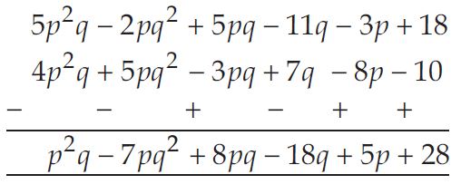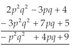 2p2q2 - 3pq + 4, 5 + 7pq - 3p2q2