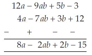 Subtract 4a - 7ab + 3b +12 from 12a - 9ab + 5b - 3