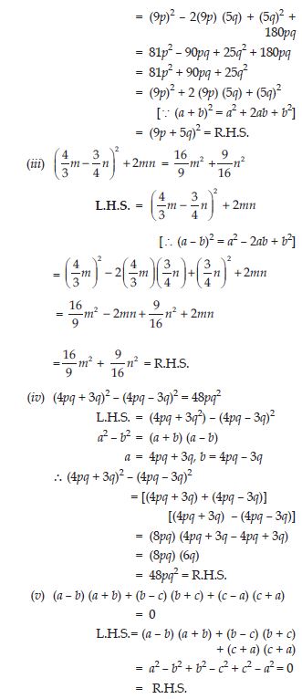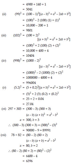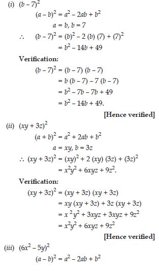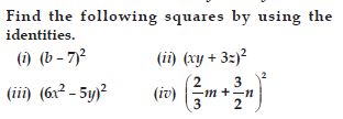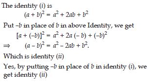 Put –b in place of b in Identity (i): (a + b)2 = a2 + 2ab + b2. Do you get Identity (ii): (a – b)2 = a2 – 2ab + b2?