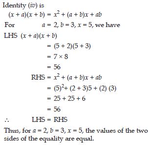 Consider, the special case of identity (iv): (x + a)(x + b)= x2 + x(a + b) + ab with a = b, what do you get? Is it related to Identity (i): (x + a)2 = x2 + 2ax + a2?