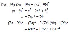 Use a suitable identity to get product of (7a – 9b) (7a – 9b)