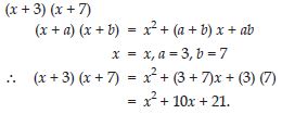 (x + a) (x + b) = x2 + (a + b) x + ab