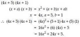 Use the identity (x + a) (x + b) = x2 + (a + b) x + ab to find the following product: (4x + 5) (4x + 1)
