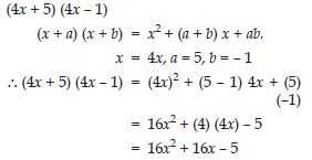 Use the identity (x + a) (x + b) = x2 + (a + b) x + ab to find the following product: (4x + 5) (4x – 1)