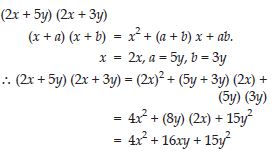 Use the identity (x + a) (x + b) = x2 + (a + b) x + ab to find the following product: (2x + 5y) (2x + 3y)