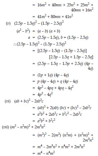 Consider the special case of identity (iv): (x + a)(x + b)= x2 + x(a + b) + ab with b = –a. What do you get? Is it related to identity (iii): (x – c)2 = x2 – 2cx + c2.