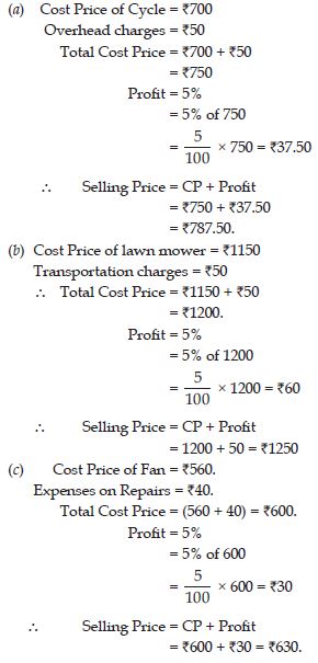 (b) a lawn mower bought at ₹1150 with ₹50 as transportation charges.