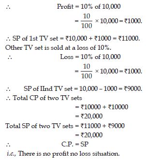 A shopkeeper bought two TV sets at ₹10,000 each. He sold one at a profit of 10% and the other at a loss of 10%. Find whether he made an overall profit or loss.