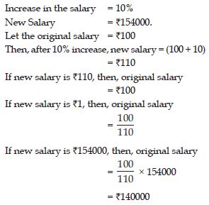 A man got a 10% increase in his salary. If his new salary is ₹1,54,000, find his original salary.