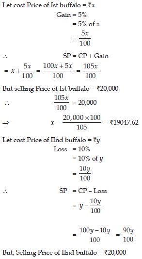 A milkman sold two of his buffaloes for ₹20,000 each. On one he made a gain of 5% and on the other a loss of 10%. Find his overall gain or loss.