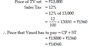 The Price of a TV is ₹13,000. The sales tax charged on it is at the rate of 12%. Find the amount that Vinod will have to pay if he buys it.