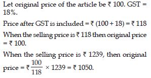 An article was purchased for ₹ 1239 including GST of 18%. Find the price of the article before GST was added?