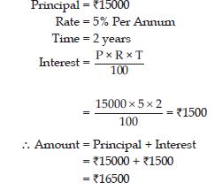 Find interest and amount to be paid on ₹15000 at 5% per annum after 2 years.
