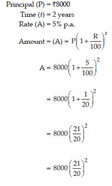 Find CI on a sum of ₹8000 for 2 years at 5% per annum compounded annually.
