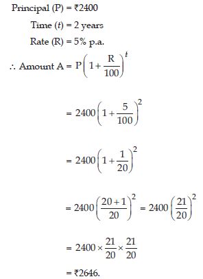 Find the amount to be paid at the end of 2 years on ₹2,400 at 5% per annum compounded annually.
