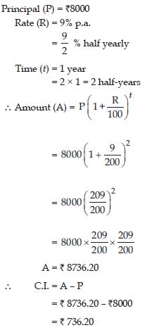 Calculate the amount and compound interest on ₹8,000 for 1 year at 9% per annum compounded half-yearly.