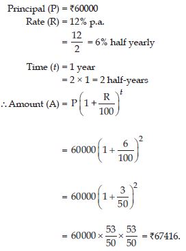 Vasudevan invested ₹60,000 at an interest rate of 12% per annum compounded half yearly. What amount would he get after 1 year?