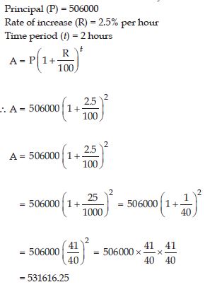 In a laboratory, the count of bacteria in a certain experiment was increasing at the rate of 2.5% per hour. Find the bacteria at the end of 2 hours, if the count was initially 5,06,000.