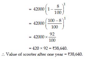 A machinery worth ₹10,500 depreciated by 5%. Find its value after one year.