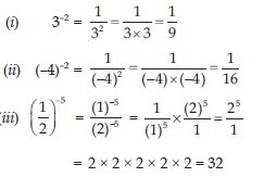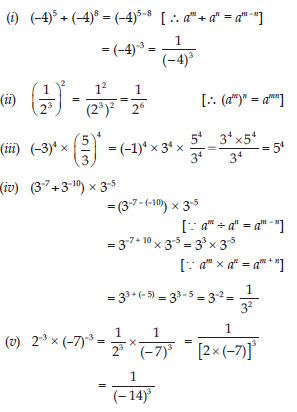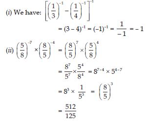 (i) (–2)–3 × (–2)–4 (ii) p3 × p–10