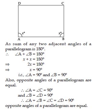 (iv) All the four angles of a rectangle are right angles and opposite sides are equal, same is the case with the square.