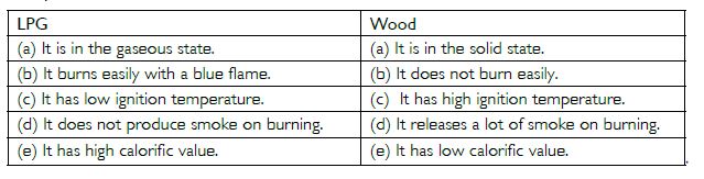 (b) LPG is a better domestic fuel than wood because it is a cleaner fuel than wood. It neither produces smoke nor does it leave any residue after burning. It has high calorific value. While wood produces a lot of smoke on burning and leaves behind ashes on burning. Wood has low calorific value.