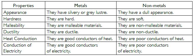 Some properties are listed in the following Table. Distinguish between metals and non-metals on the basis of these properties.