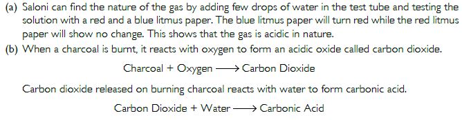 Saloni took a piece of burning charcoal and collected the gas evolved in a test tube.