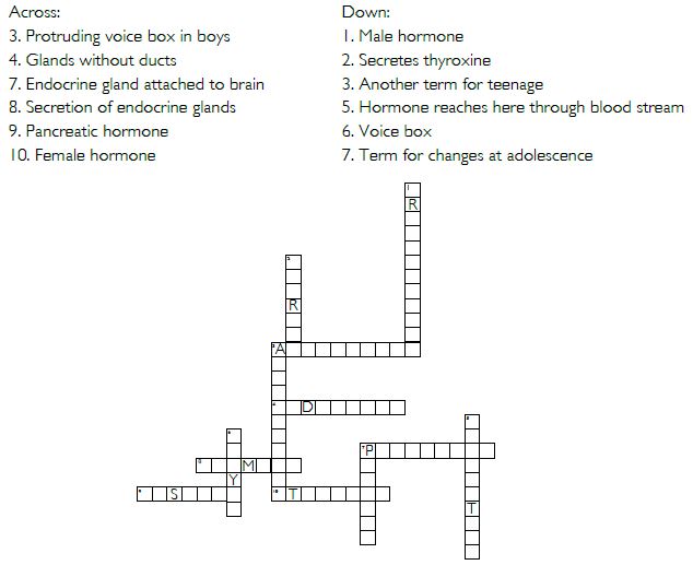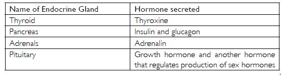 Prepare a table having two columns depicting names of endocrine glands and hormones secreted by them.