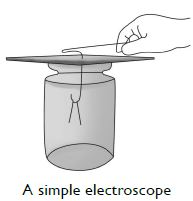 An electroscope can be used to detect if a body is charged or not. When a charged body touches the metal conductor, the metal strips repel each other and open wide. This proves that the body is charged.