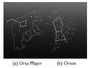 Draw sketches to show the relative positions of prominent stars in (a) Ursa Major and (b) Orion