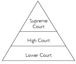 In the following illustration, fill in each tier with the judgements given by the various courts in the Sudha Goel case. Check your responses with others in class.