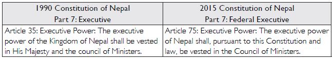 What is the difference in who exercises ‘Executive Power’ in the above two Constitutions of Nepal?