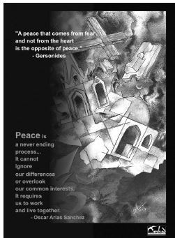This poster alongside highlights the need for ‘Peace’. It says, ‘’Peace is a never-ending process....