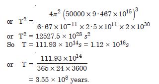 Let us assume that our galaxy consists of 2.5 × 1011 stars each of one solar mass. How long will a star at a distance of 50000 km from galaxy centre take to complete one revolution ? Take the diameter of the milky way to be 105 ly.
