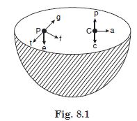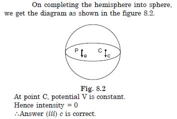 The gravitational intensity at the centre of the drum head defined by a hemispherical shell has the direction indicated by the arrow (see figure 8.1) (i) a, (ii) b, (iii) c, (iv) zero.