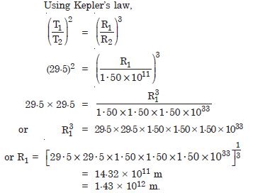 A saturn year is 29·5 times the earth year. How far is the Saturn from the sun if the earth is 1·50 × 108 km away from the Sun ?