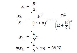 A body weighs 63 N on the surface of the earth. What is the gravitational force on it at a height equal to half the radius of the earth ?