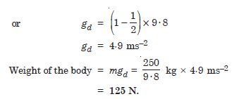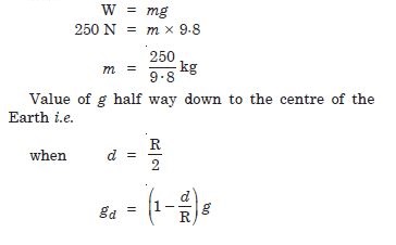 Assuming the Earth to be a sphere of uniform mass density, how much would a body weigh half way down to the centre of the Earth if it weighed 250 N on the surface ?