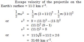 The escape speed of a projectile on the Earth’s surface is 11·2 km s–1. A body is projected out with thrice this speed. What is the speed of the body far away from the Earth ? Ignore the presence of the Sun and other planets.