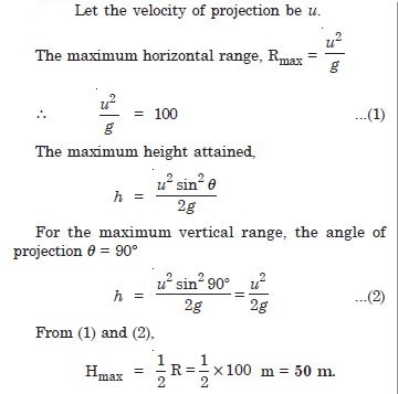 A cricketer can throw a ball to a maximum horizontal distance of 100 m. How much high above the ground can the cricketer throw the same ball ?