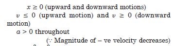 position, velocity and acceleration of the ball during its upward and downward motion.