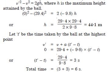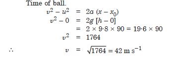 Acceleration of the ball at the highest point of its motion = 9·8 m s–2 vertically downward.