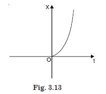 Figure 3.13 shows x – t plot of one dimensional motion of a particle. Is it correct to say from the graph that the particle moves in a straight line for t < 0 and on a parabolic path for t> 0 ? If not, suggest a suitable physical context for this graph.