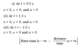 Figure 3.16 gives the (x–t) plot of a particle executing one-dimensional simple harmonic motion. Give the signs of position, velocity and acceleration variables of the particle at t = 0·3 s, 1·2 s, – 1·2 s.