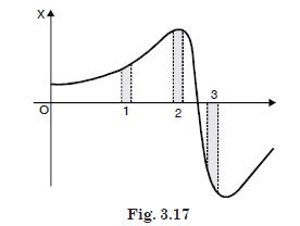 Figure 3.17 give the x-t plot of a particle in one dimensional motion. Three different equal